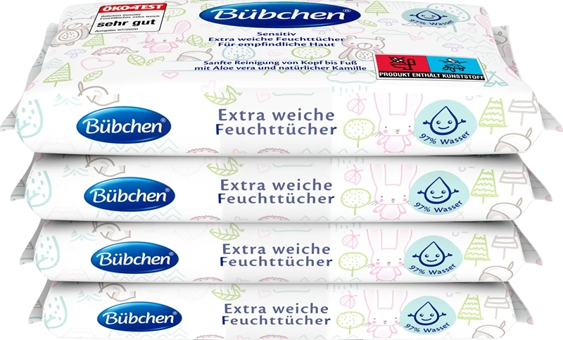 Les lingettes nettoyantes Bübchen Sensitive soignent la peau de l’enfant de façon simple, rapide et fiable.