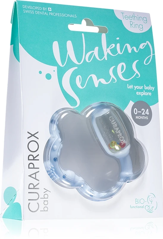 La poussée des premières dents est toujours désagréable, et souvent synonyme de douleur. L’anneau de dentition Curaprox Baby Waking Senses rend cette étape plus facile à passer en éliminant presque complètement la douleur. Grâce à sa surface intéressante et à ses petites boules colorées qui font du bruit, il occupe votre enfant pendant de longues heures, tout en le préparant au brossage de ses futures dents grâce à sa petite brosse d’entraînement intégrée. Pensez à la bonne santé des dents de votre enfant et offrez-lui l’anneau Curaprox.