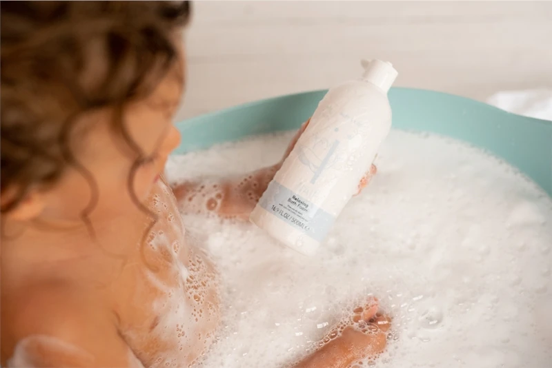 Versez une quantité adéquate de bain moussant Naif Baby & Kids sous le jet d’eau de votre baignoire et laissez mousser.