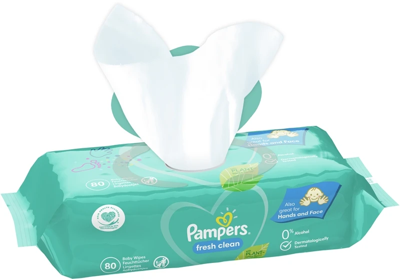 Les lingettes nettoyantes Pampers Fresh Clean soignent la peau de l’enfant de façon simple, rapide et fiable.