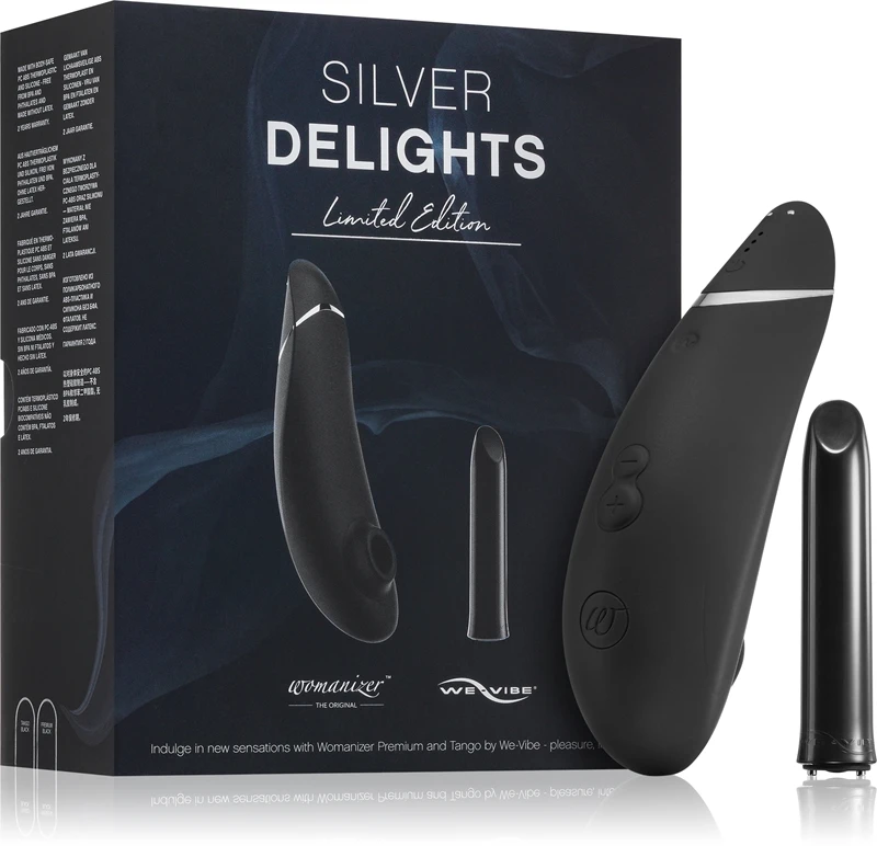 Deux marques se sont associées pour créer deux appareils. Elles n’ont qu’un objectif – vous procurer un orgasme. L’ensemble Silver Delights de Womanizer comprend le stimulateur clitoridien Womanizer PREMIUM et le mini-vibromasseur We-Vibe® Tango. Ces appareils proposent 12 niveaux d’intensité et 8 modes de vibration. À vous de choisir celui qui vous permettra d’atteindre l’orgasme.